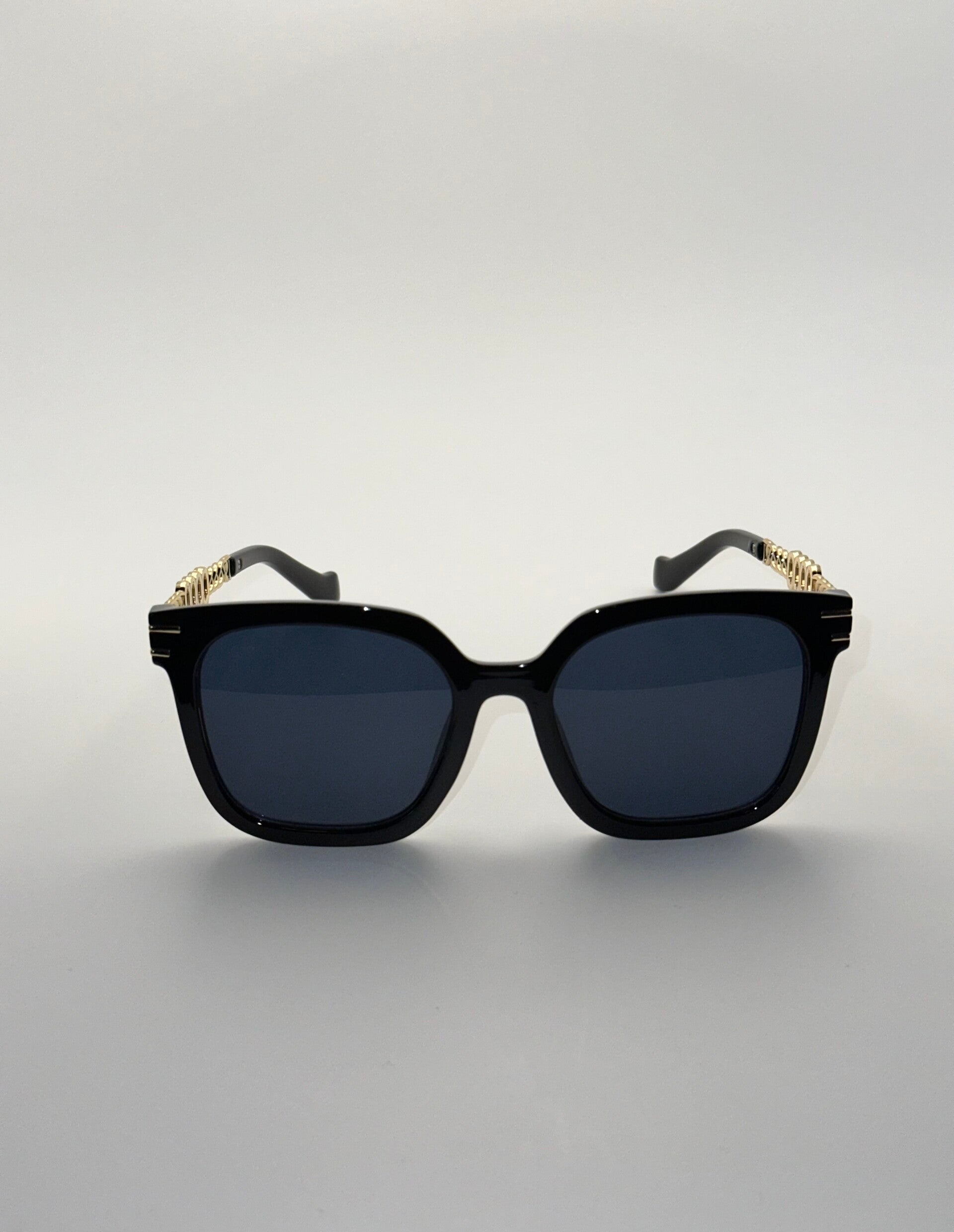 Vintage Square-Round | Dark Black | Black Tint | Gold Detailed w/Black Arms