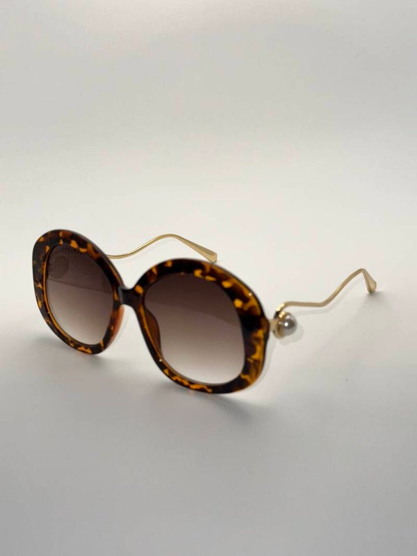 Large Round | Stylish Leopard| Dark Brown Gradient | Gold Wavy w/Pearl Detailed Arms