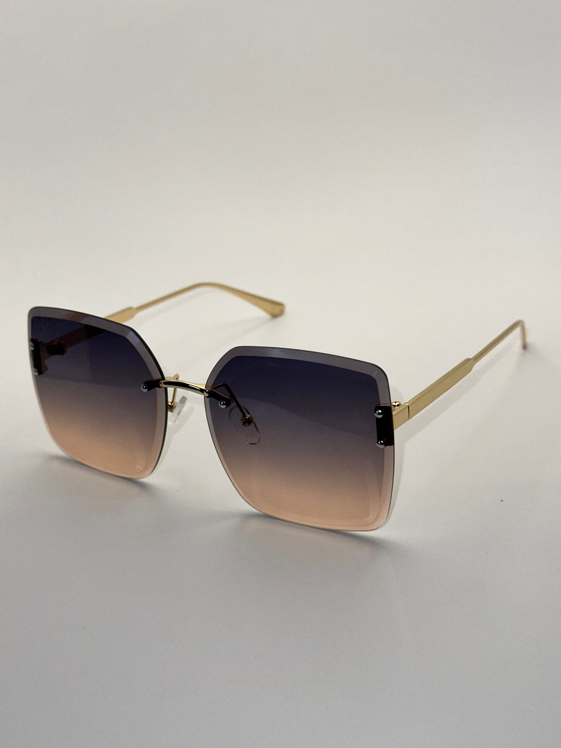 Large Rimless Square | Dark Brown Ombre Gradient | Gold Design Arms